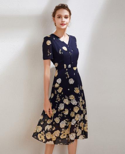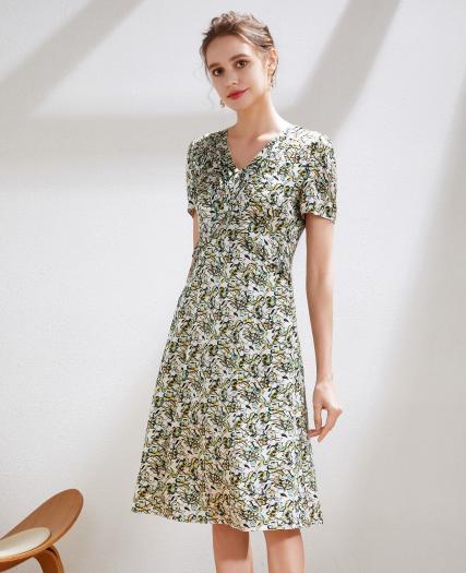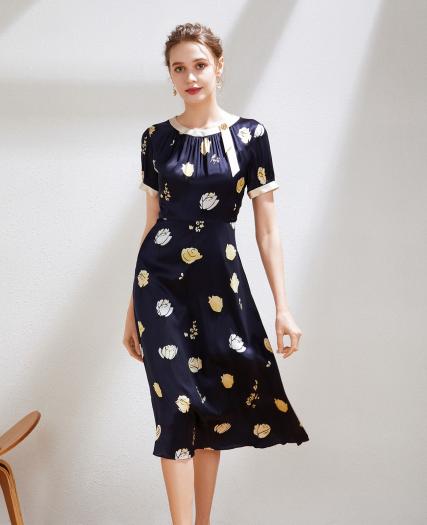 真丝印花连衣裙