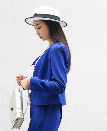 条纹海军蓝西装+西裤二件套装