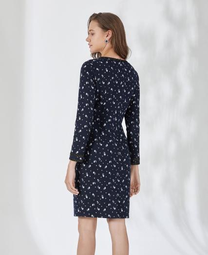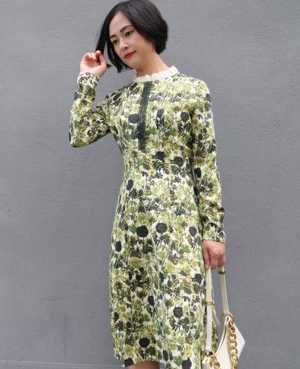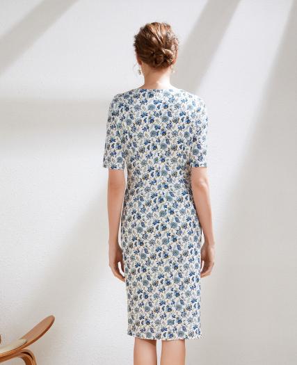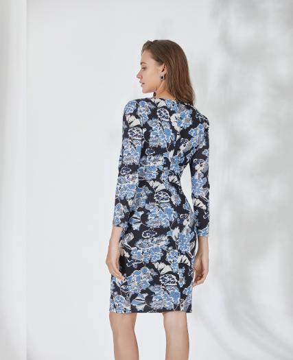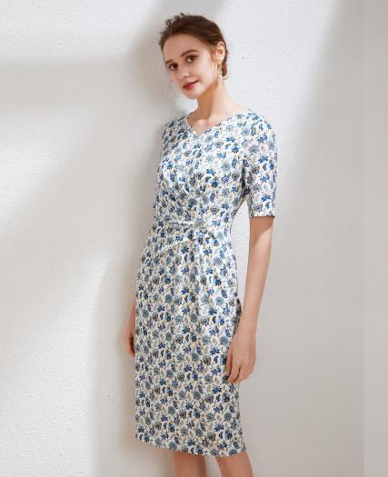 真丝印花修身连衣裙