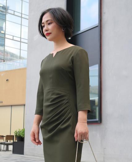 绿色打褶连衣裙