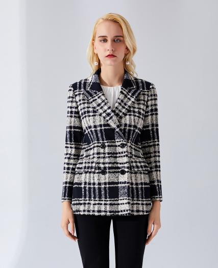 格子双排扣外套