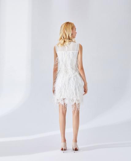 白色鸵鸟毛礼服裙