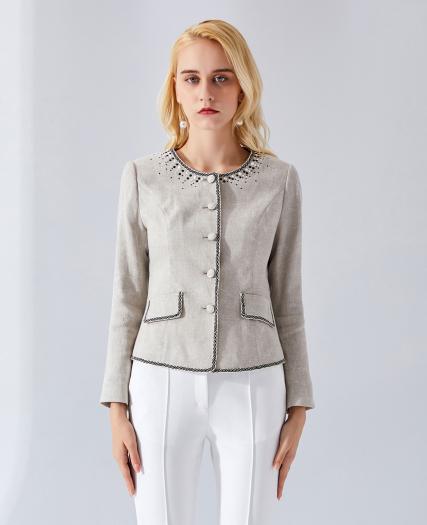 圆领烫钻外套