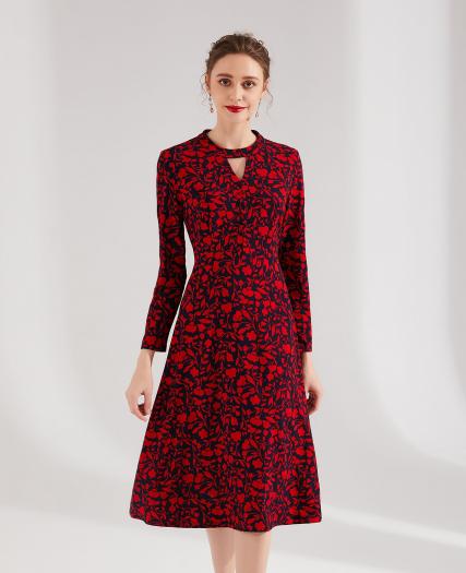 针织印花连衣裙