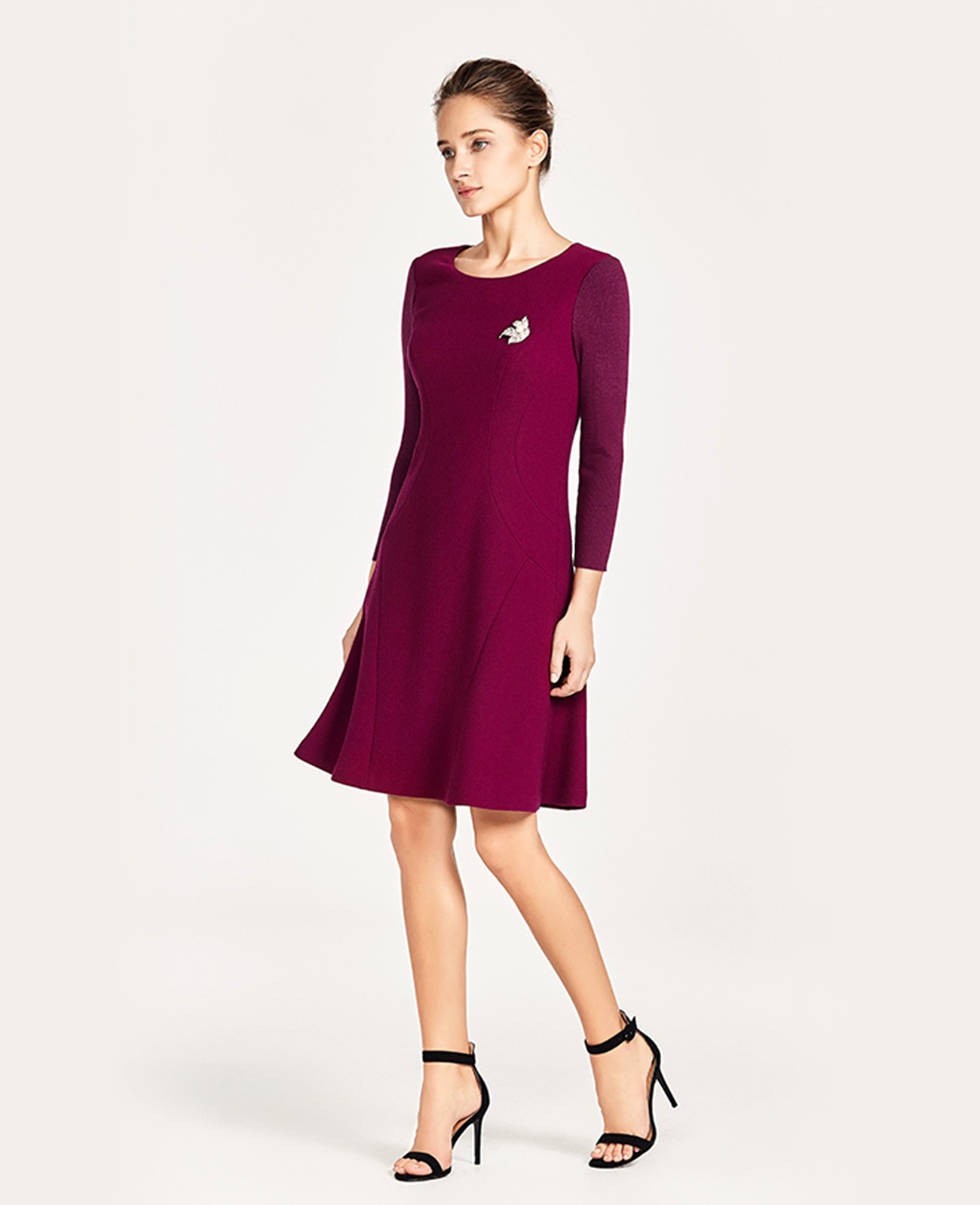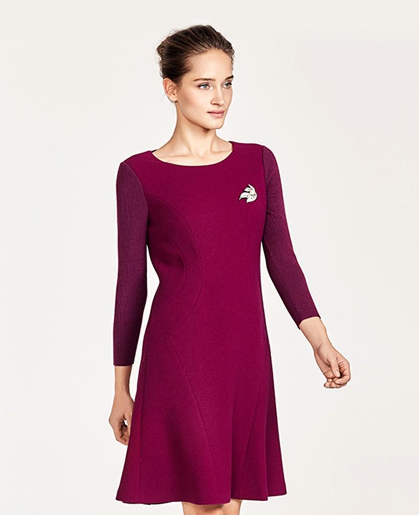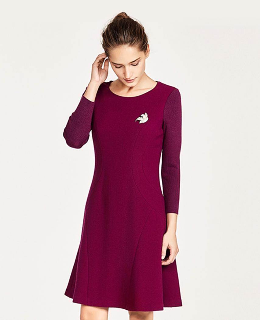羊毛针织袖拼接连衣裙