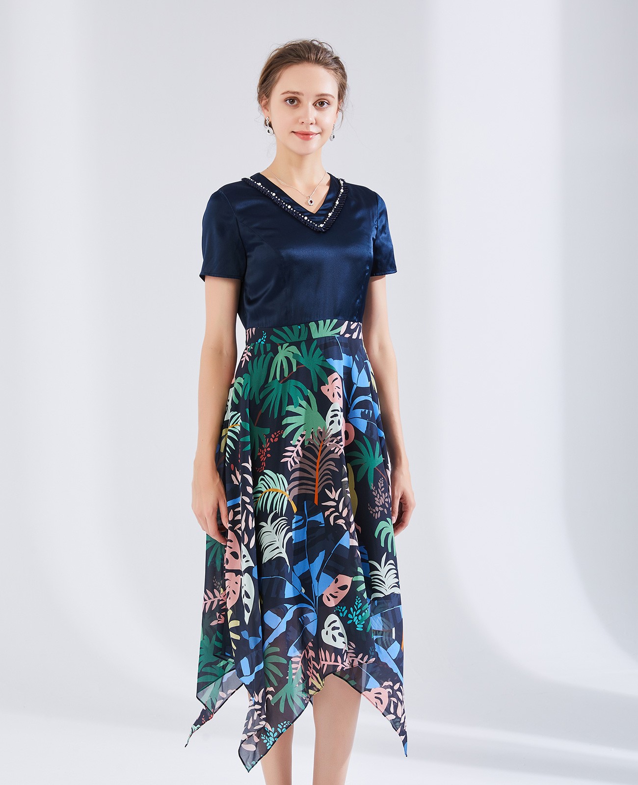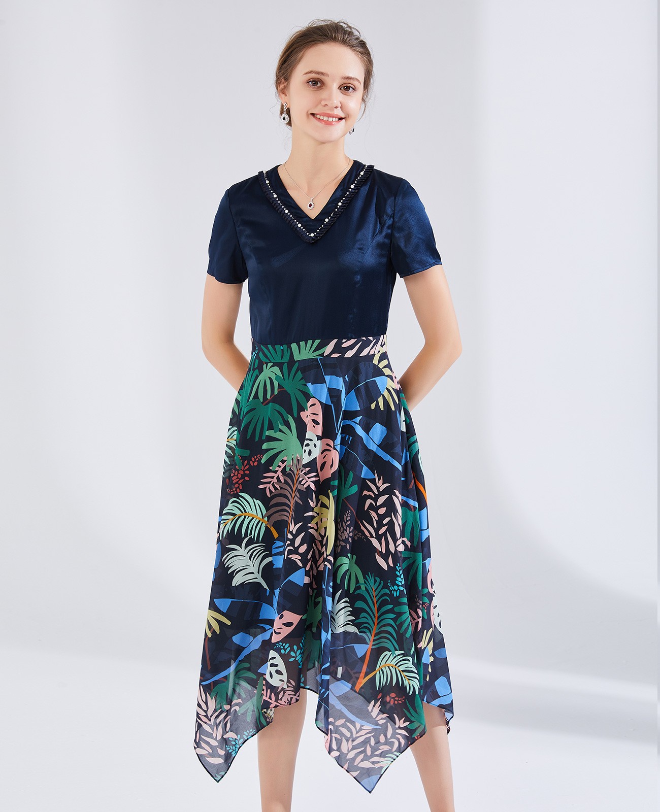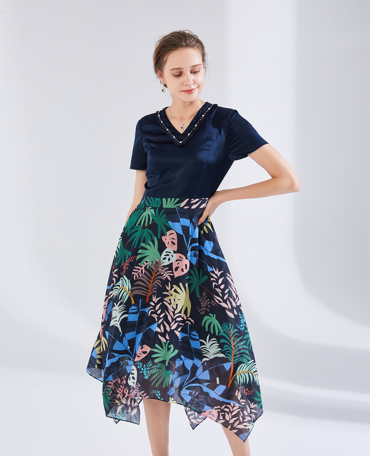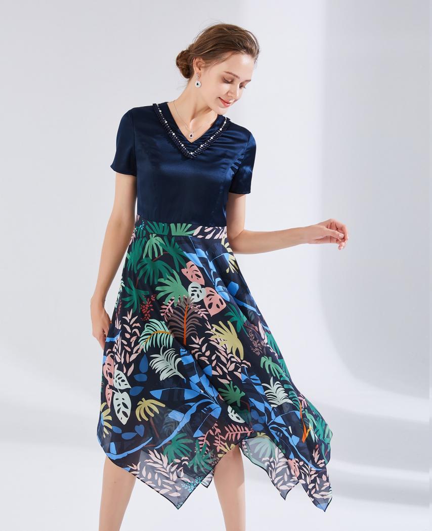 针织印花连衣裙