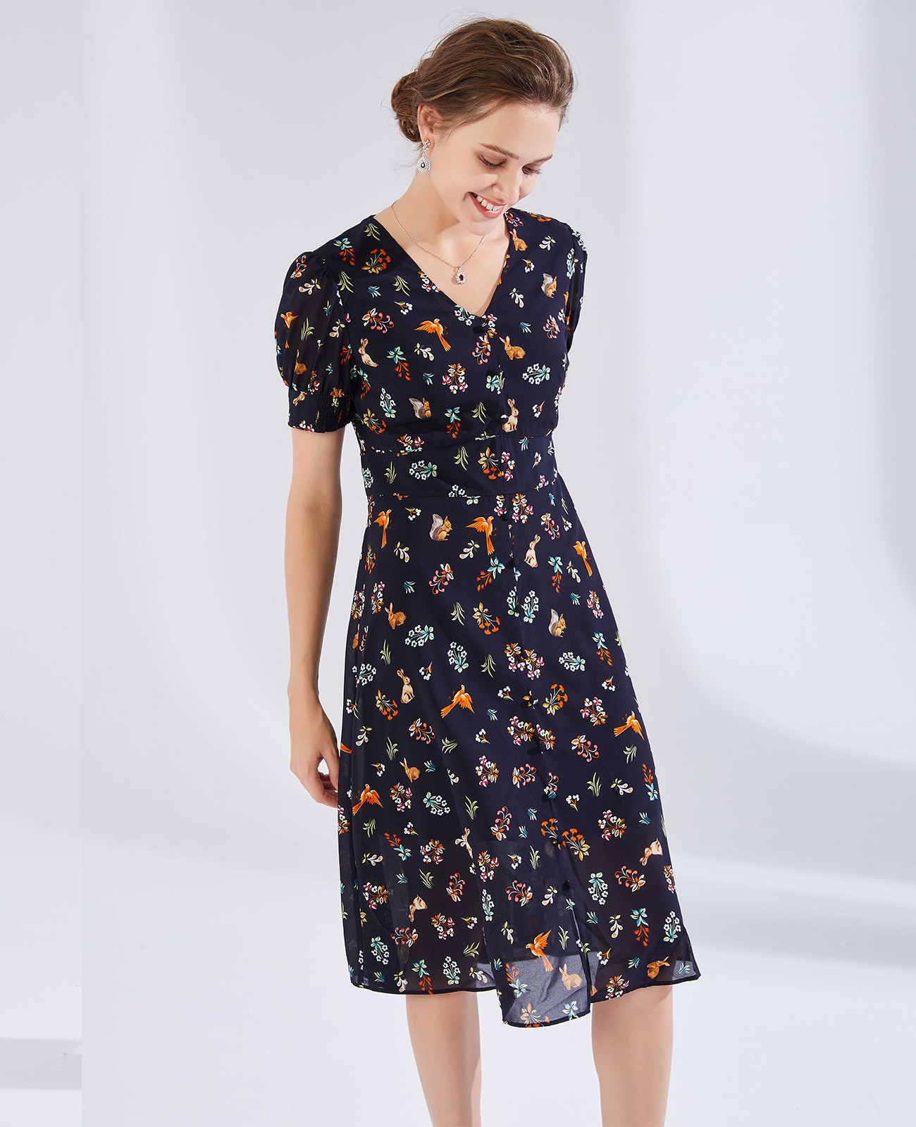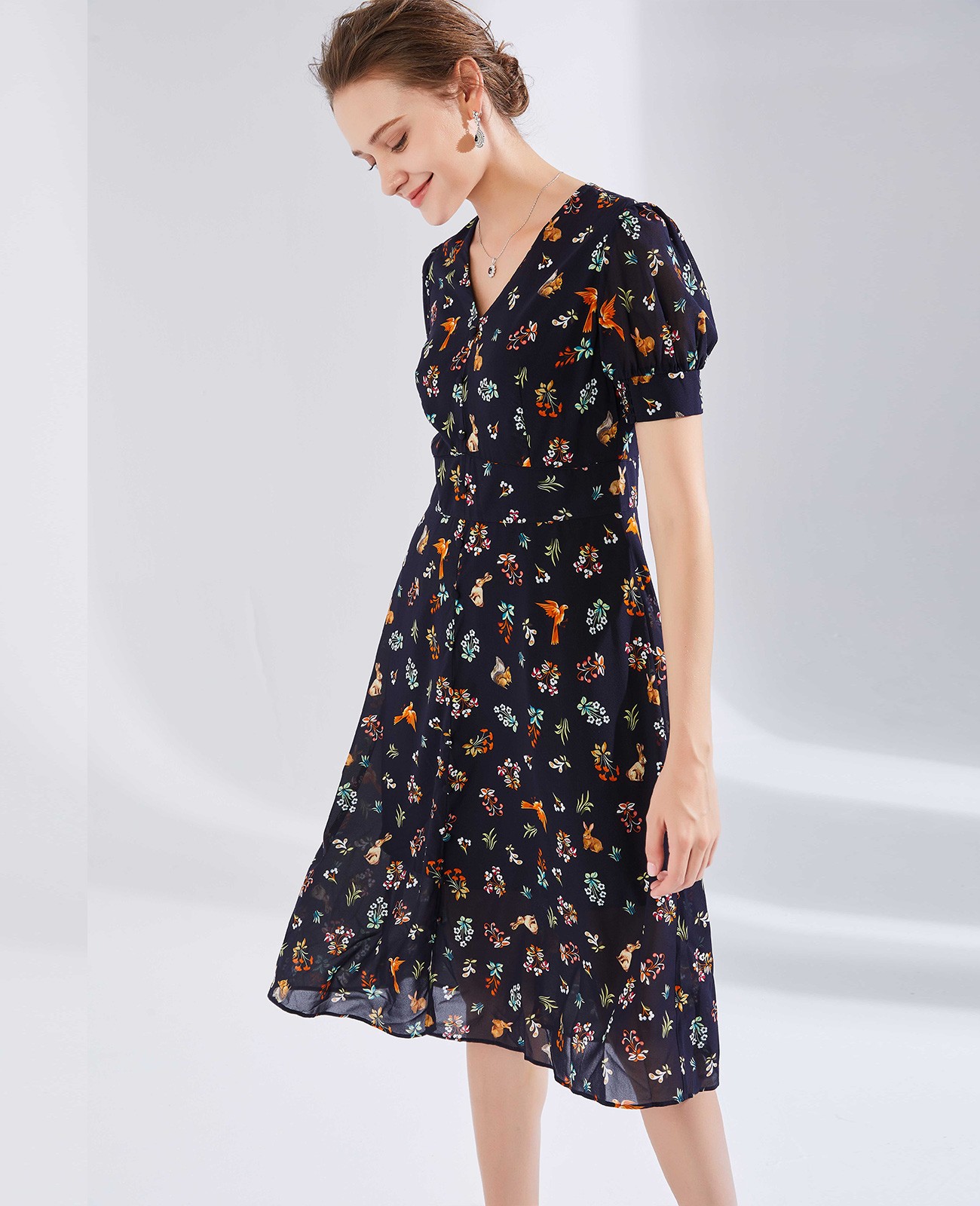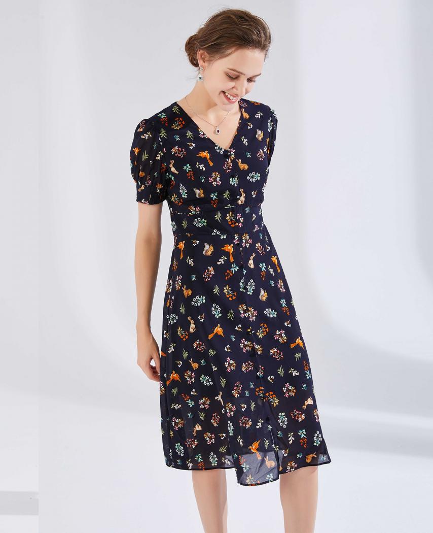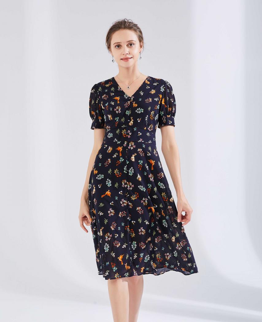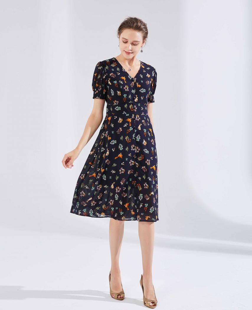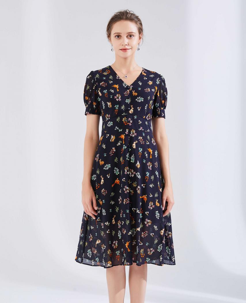 针织印花连衣裙