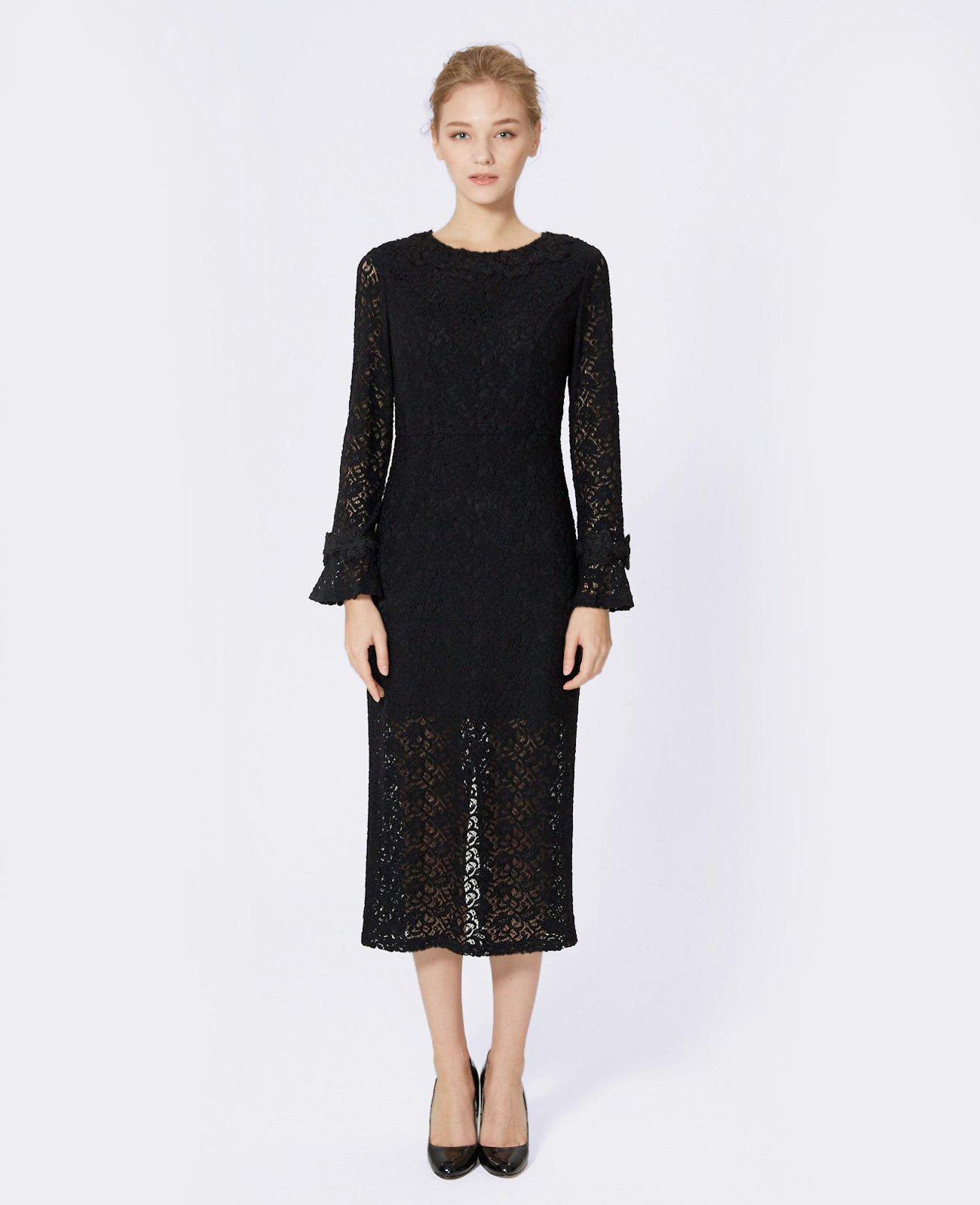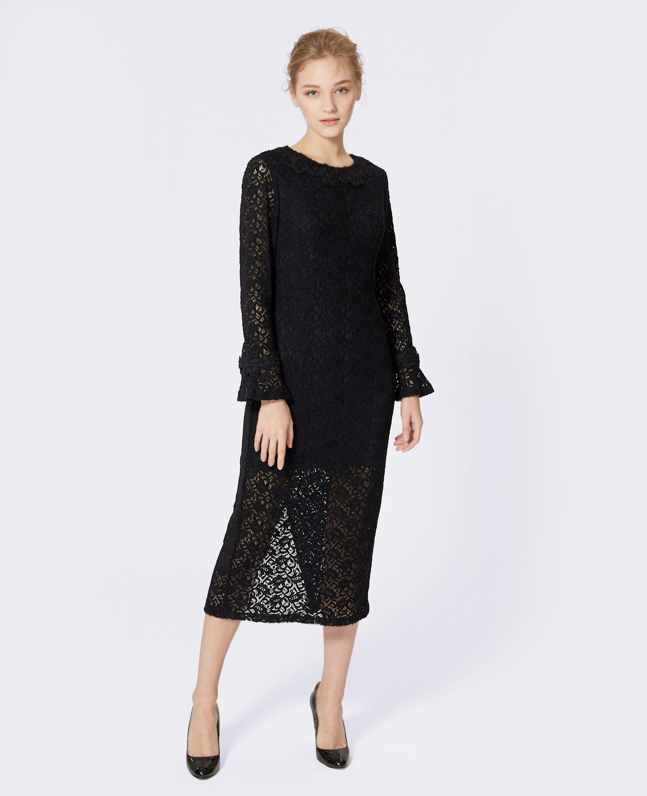 面料名称:蕾丝剪裁小黑裙 面料编号:FT-Fabric-8664