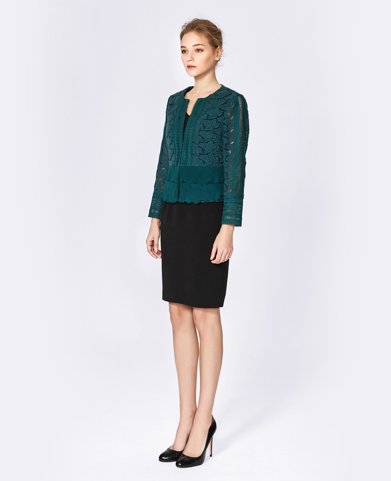 面料名称:墨绿叶子镂空蕾丝 面料编号:FT-Fabric-6624