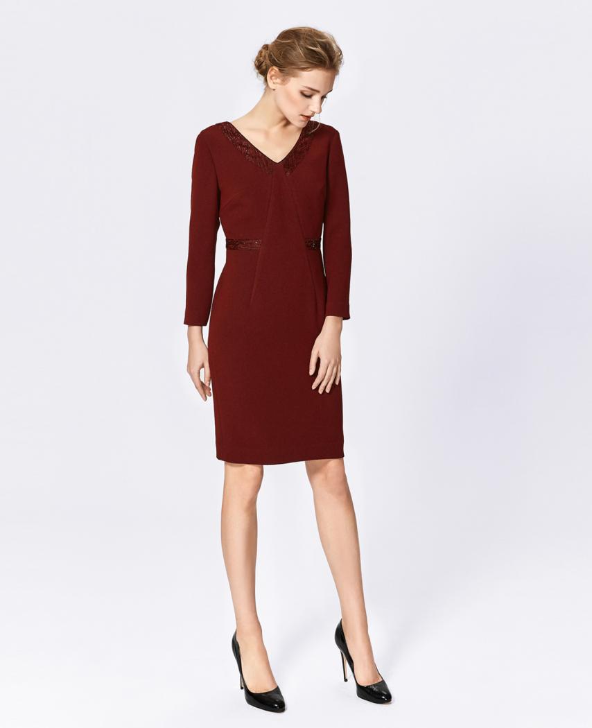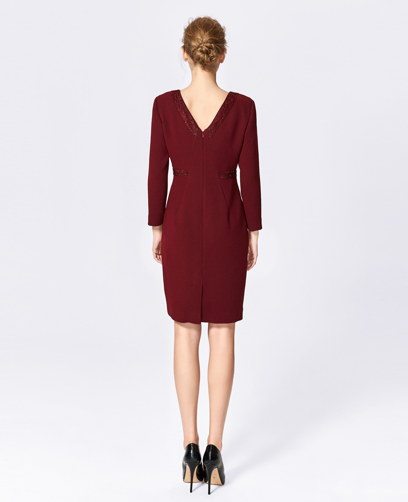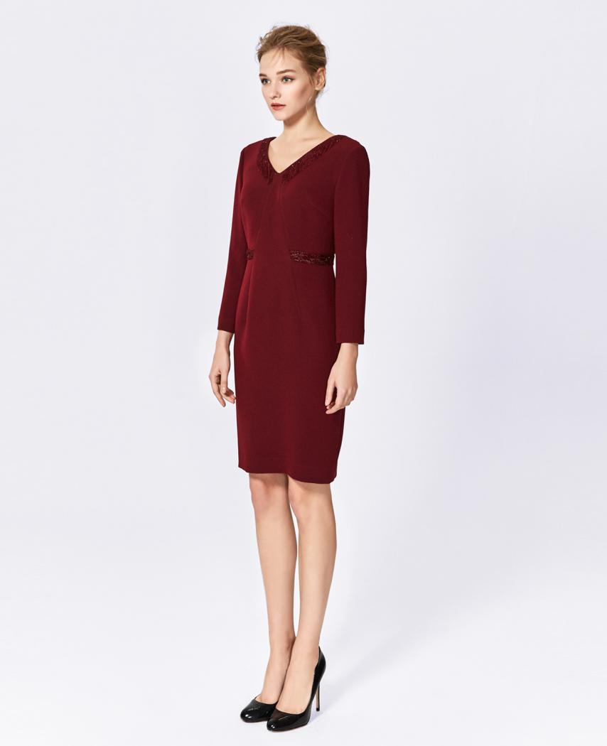 面料名称:酒红色V领裙 面料编号:FT-Fabric-0756