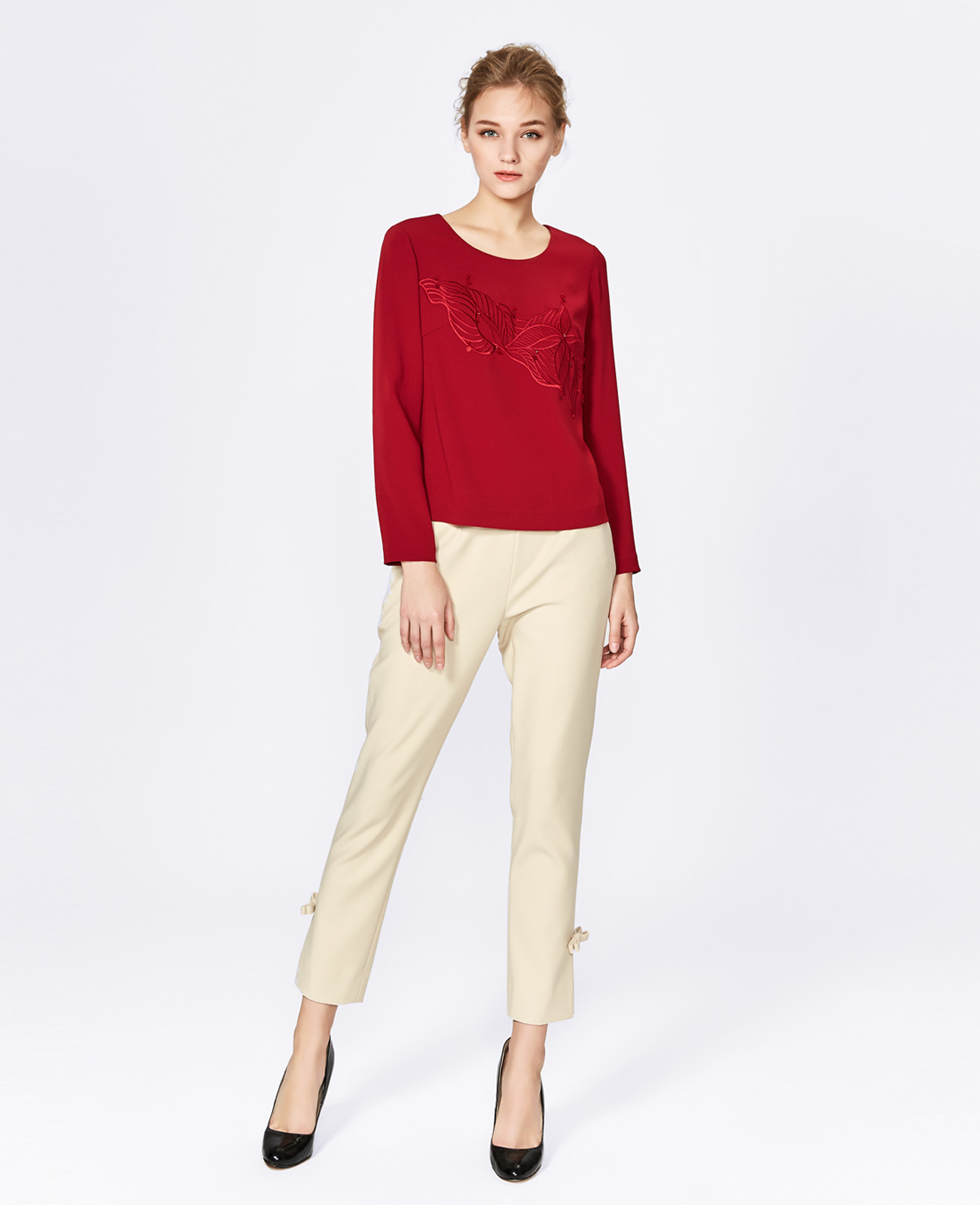 面料名称:酒红色纱织及膝裙 面料编号:FT-Fabric-0799